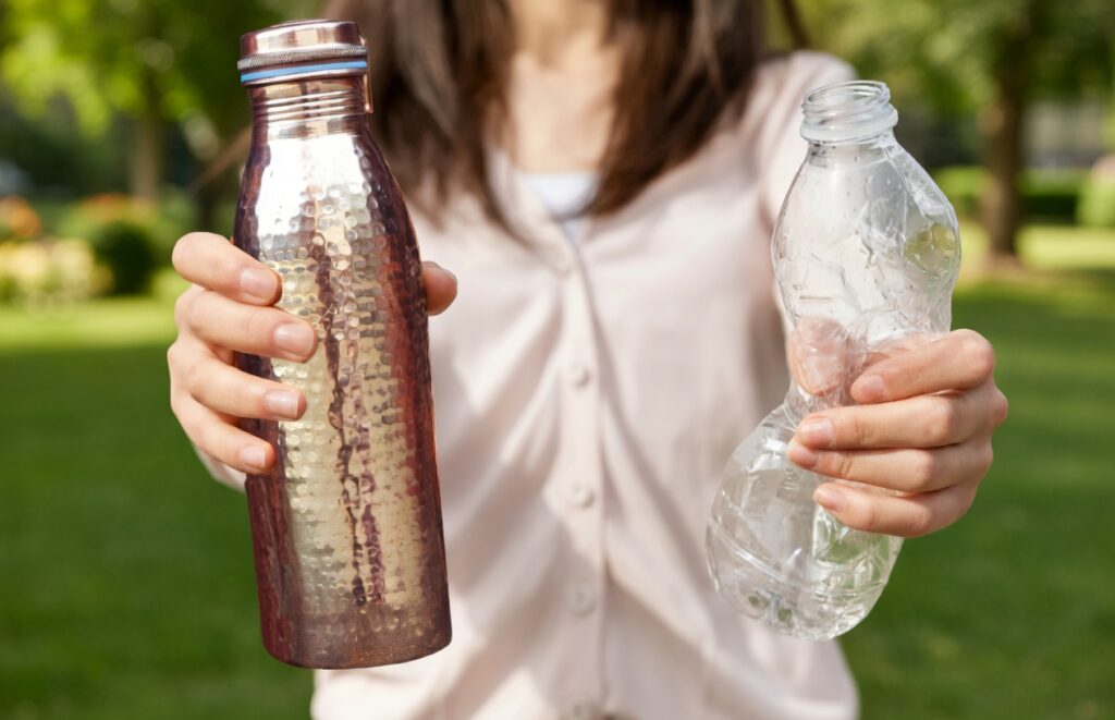 नई दिल्ली। स्वस्थ रहने के लिए जितना जरूरी पर्याप्त पानी पीना है, उतना ही महत्वपूर्ण सही तरीके और सही बर्तन में पीना भी है। विशेषज्ञों का कहना है कि पानी की बोतल का चुनाव हमारी सेहत पर असर डाल सकता है। आजकल लोग प्लास्टिक की बोतलों को छोड़ तांबे और स्टील की बोतलों का इस्तेमाल कर रहे है। दोनों ही विकल्प सुरक्षित माने जाते हैं, लेकिन उनके गुण और लाभ अलग-अलग हैं। तांबे की बोतलों को आयुर्वेद में बहुत अहम माना जाता है। तांबे में प्राकृतिक एंटी-माइक्रोबियल गुण पाए जाते हैं, जो शरीर में हानिकारक बैक्टीरिया को खत्म करने में मदद करते हैं। वैज्ञानिक रिसर्च के अनुसार, तांबे की बोतल में पानी को कुछ घंटे रखने पर पानी तांबे के सूक्ष्म तत्वों को सोख लेता है, जिससे पानी पीने से रोग प्रतिरोधक क्षमता बढ़ती है। इसके अलावा, तांबे के पानी से पाचन क्रिया भी तेज होती है और शरीर में थायरॉइड से जुड़ी समस्याओं में राहत मिल सकती है। तांबे के तत्व शरीर में जरूरी एंजाइमों के उत्पादन को बढ़ाते हैं, जो भोजन को जल्दी और सही तरीके से पचाने में मदद करते हैं। तांबे की बोतल का सही तरीके से रखरखाव भी जरूरी है। एक्सपर्ट्स के अनुसार, इसे नियमित रूप से साफ करना चाहिए और इसके लिए नींबू, नमक या सिरके वाले घोल का उपयोग किया जा सकता है। धोने के बाद बोतल को पूरी तरह सुखा लेना चाहिए। स्टेनलेस स्टील की बोतलें रोजमर्रा के लिए बेहद लोकप्रिय हैं। ये बोतलें टिकाऊ, सुरक्षित और साफ करने में आसान होती हैं। स्टील की बोतलों में कोई हानिकारक रसायन या गंध नहीं आती। ये बोतलें पानी को लंबे समय तक ठंडा या गर्म बनाए रख सकती हैं। स्टील की बोतलों की सफाई भी आसान है। इन्हें साधारण साबुन और पानी से धोया जा सकता है और लंबे समय तक इस्तेमाल किया जा सकता है। कांच की बोतलें भी एक सुरक्षित विकल्प हैं, खासकर उन लोगों के लिए जो रासायनिक पदार्थों से बचना चाहते हैं। कांच पूरी तरह से केमिकल फ्री होता है और मिनरल वॉटर पीने के लिए सुरक्षित माना जाता है। हालांकि यह रोजमर्रा के उपयोग में उतनी टिकाऊ नहीं होती और इसे संभालकर रखना पड़ता है।