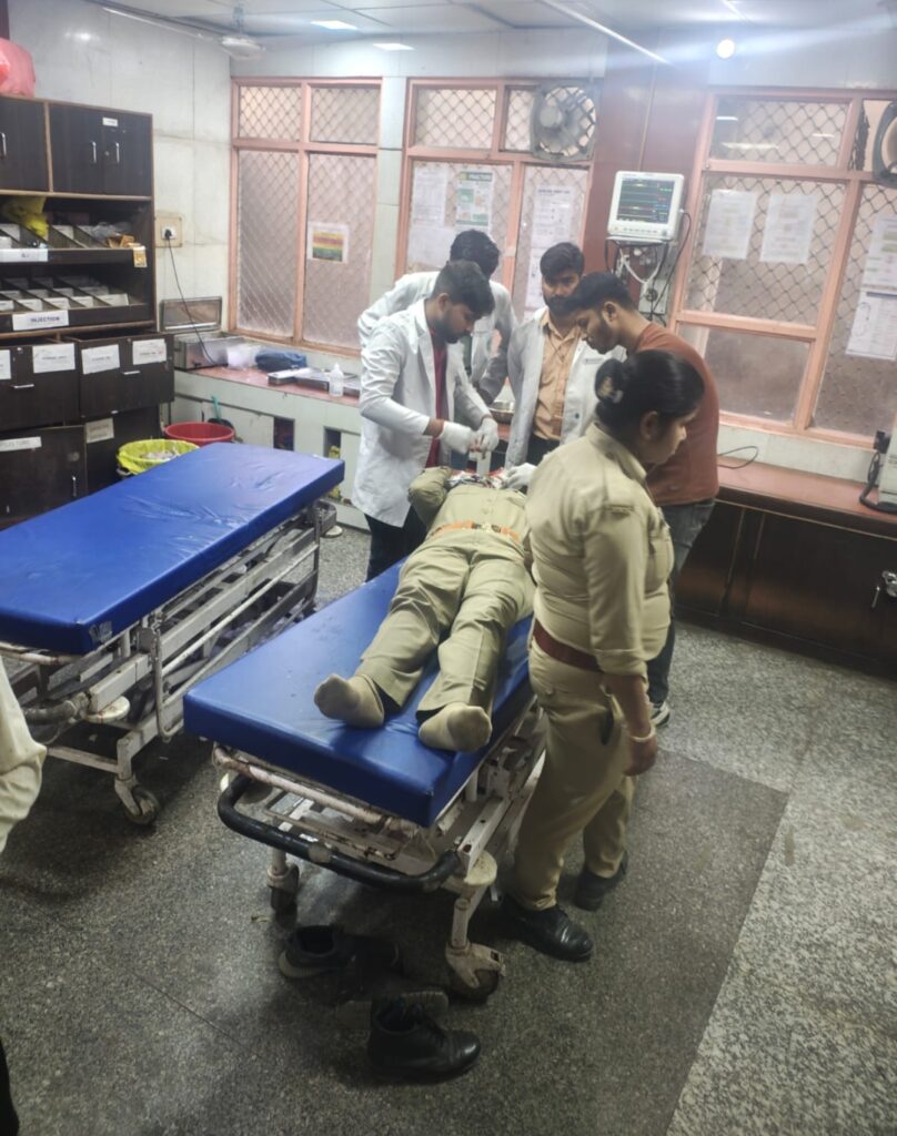 घायल महिला सिपाही को सिविल अस्पताल मे कराया भर्ती सहयोगी महिला सिपाही ने तत्काल।